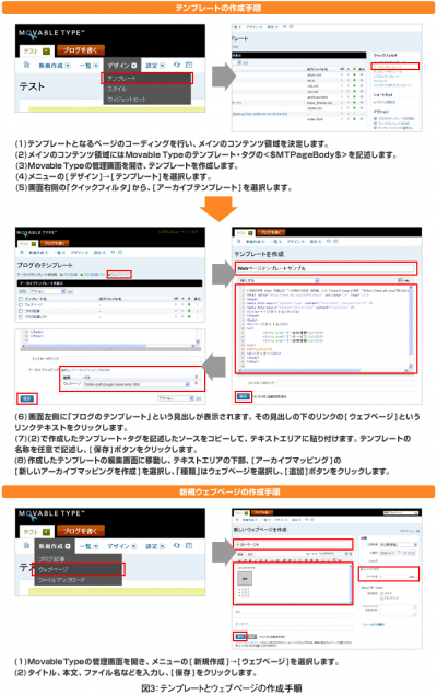Movable Typeのバージョン4以降から搭載された、「ウェブページ」という機能を使用します。まず、次の8つの手順でテンプレートを作成します。