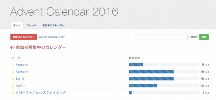 技術の情報共有サイトQiitaやAdventarというサイト上ではすでに、多くの人が参加登録を実施しています。