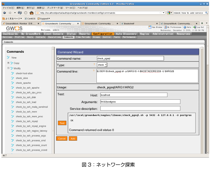 結果がOKであれば、Usage:に「check_pgsql!ARG1!ARG2」が表示されます。「Add」→「Continue」として設定をセーブします。