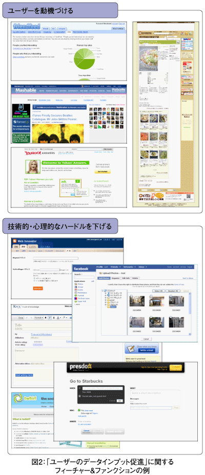 「ユーザーのデータインプット促進」ためのフィーチャー&ファンクションのリストをダウンロード(http://www.thinkit.co.jp/images/article/115/3/11531.zip)できるようにしましたので、参考にしてみてください(11531.zip/7.46 KB)。
