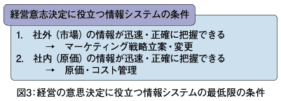 日々変化する外部の情報をリアルタイムで共有し、意思決定につなげることは難しいが、本気で社外の情報を意思決定に活用しようと思えば、インターネット上のさまざまな情報、営業担当者の日報にある競合情報、市場全般の情報など活用できるものはいくらでもある。それらを体系的に集め、意味をもたせ、経営上重要な「ナレッジ」として共有し、短期間で意思決定につなげるシステムは構築しうるのではないか。もちろん、システムの情報をもとに意識共有する「場」や、社員の意識改革などアナログ的な要素も重要である。
