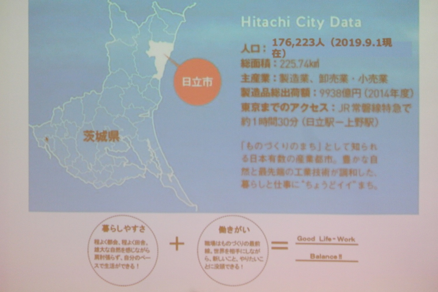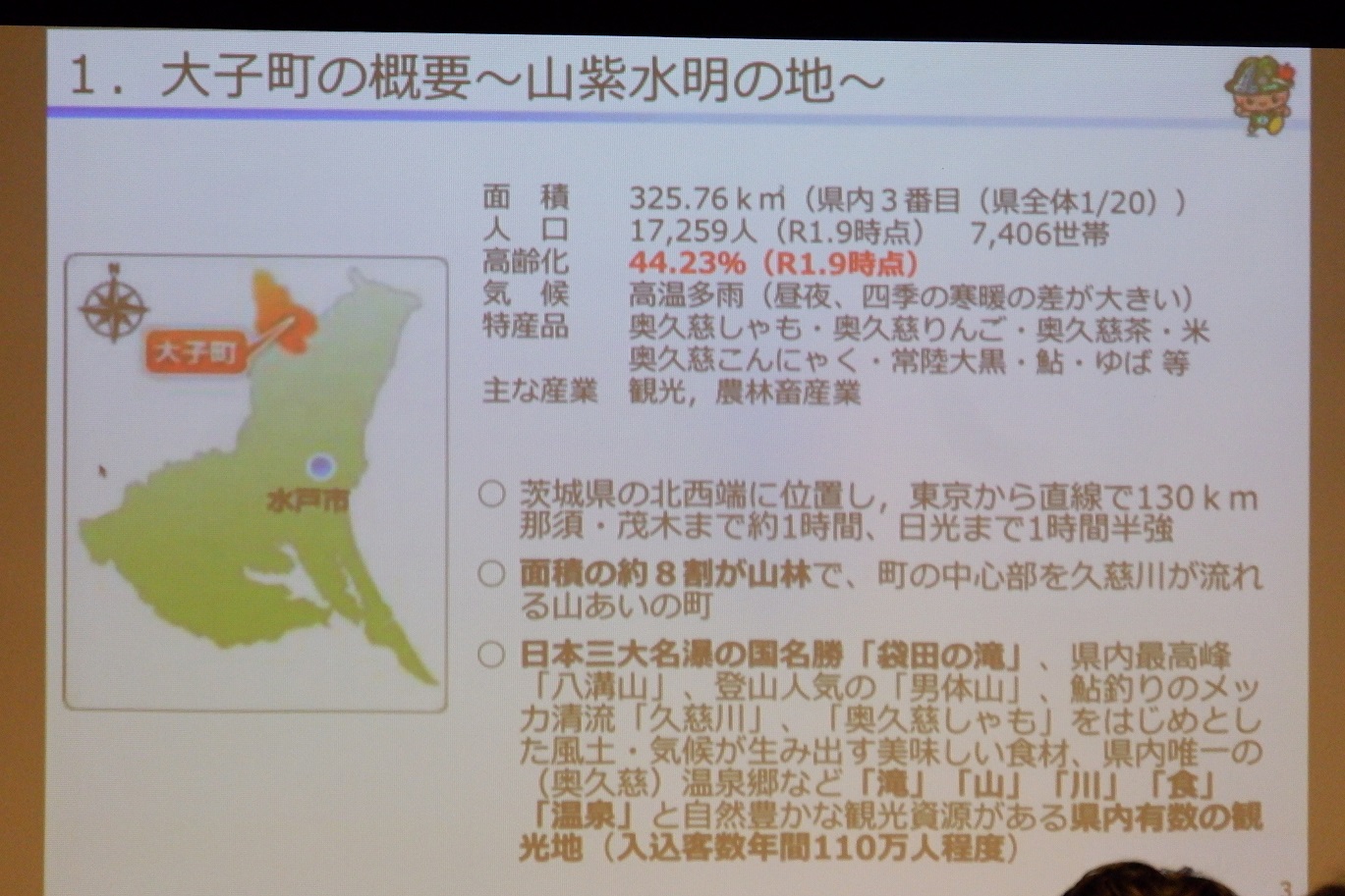 飯村氏の説明に続いて、いよいよ日立市と大子町のプレゼンテーションとなった。