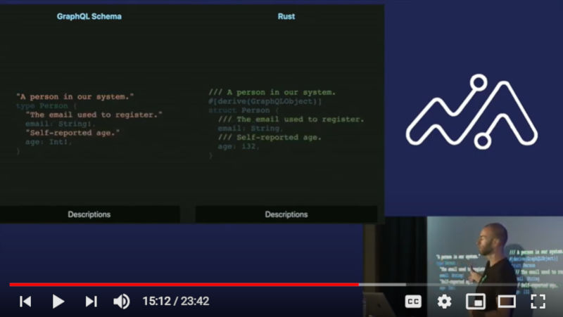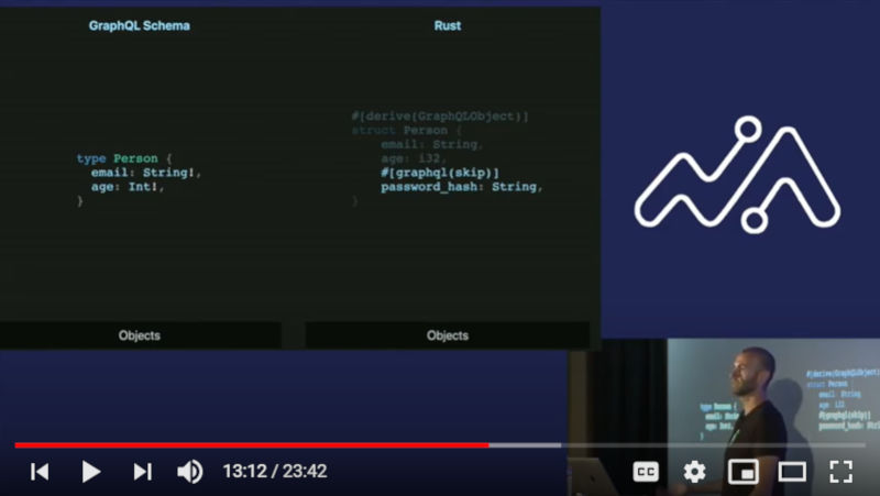 他にもローレベルのシステムプログラミング言語でありながら、アプリケーション開発者にとっても便利な機能も解説され、RustとGraphQLの相性の良さを強調した形になった。