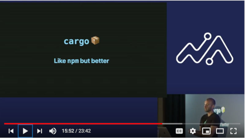 そしてRustにおいてコメントが重要視されていることを示すために、CargoというRust公式のビルドツールを紹介した。