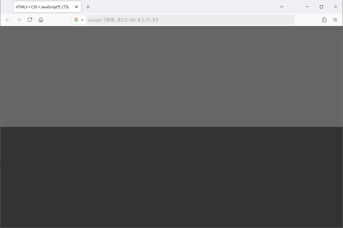 <script>~</script>タグでJavaScriptをコーディングします。document.querySelector("#upper")でIDが"#upper"のセレクタを取得し、ライトグレーの背景色にセットします。IDが"#lower"のセレクタを取得し、ダークグレーの背景色をセットします。