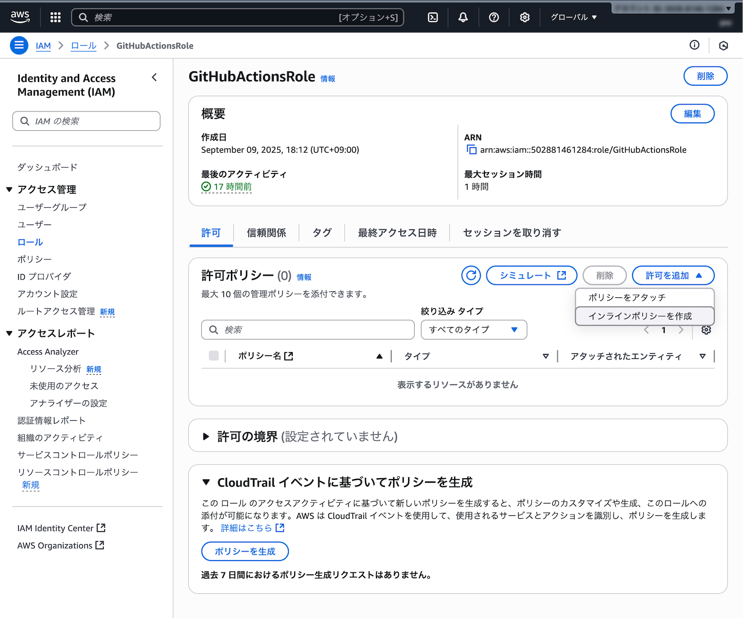 - 4.3 ステップ2: GitHub Actions専用のIAMロールを作成する