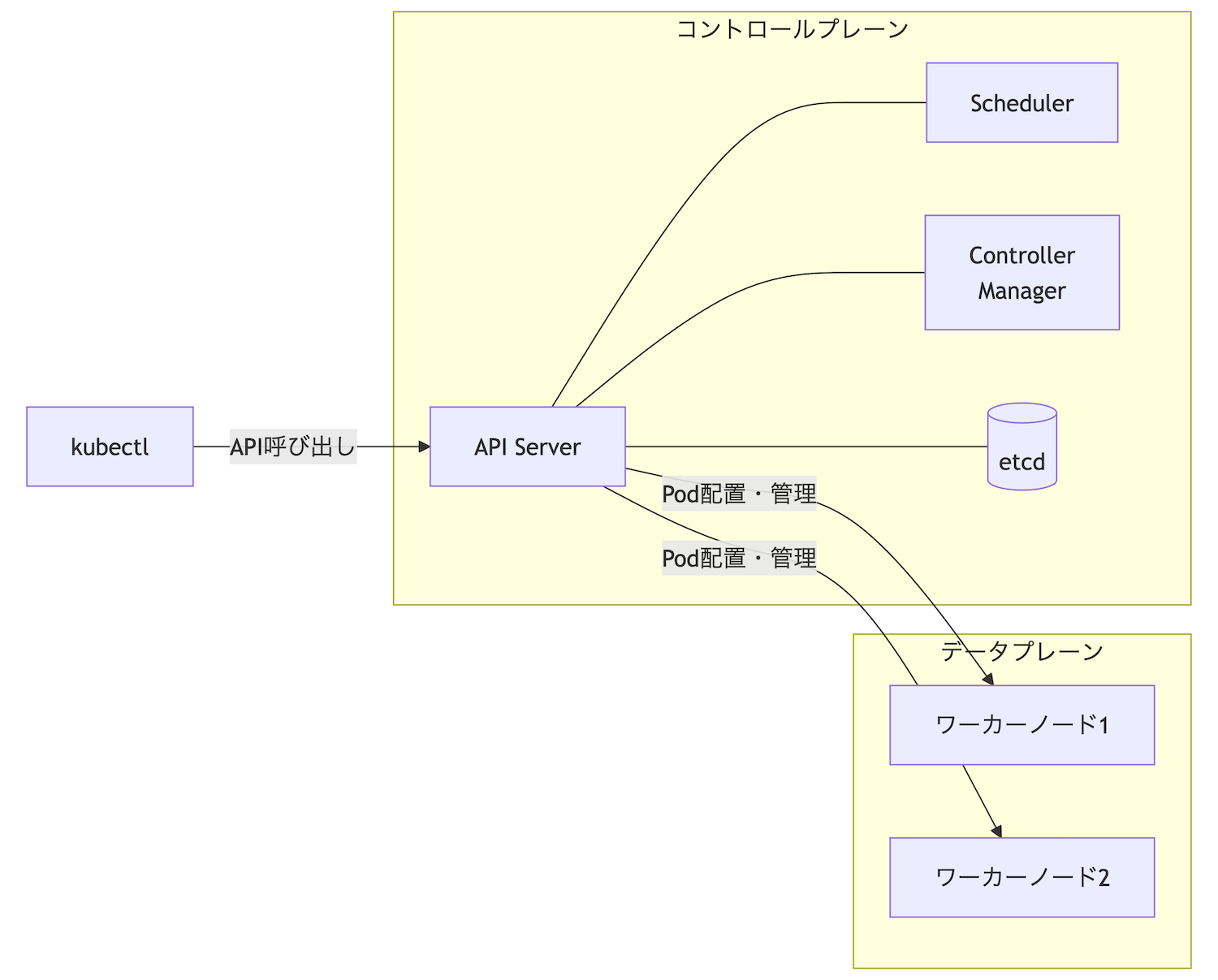 コントロールプレーンとデータプレーンKubernetesクラスターは、大きく2つの部分で構成されます。