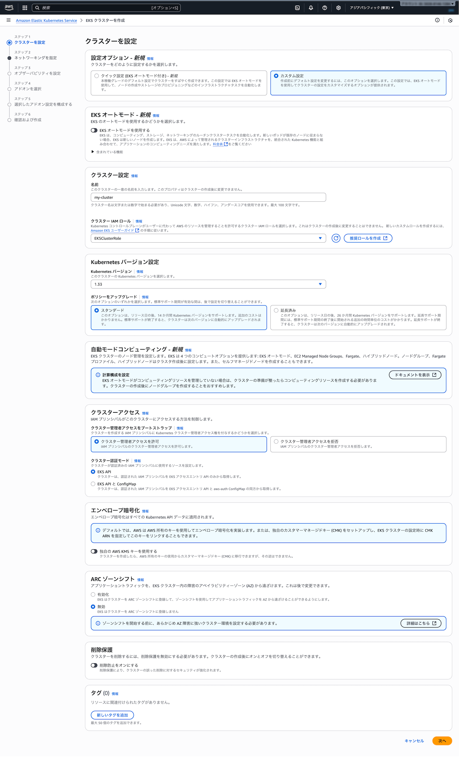 - 3.4 ステップ3: EKSクラスターの作成