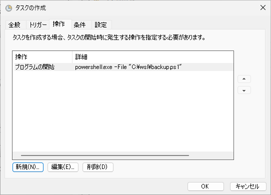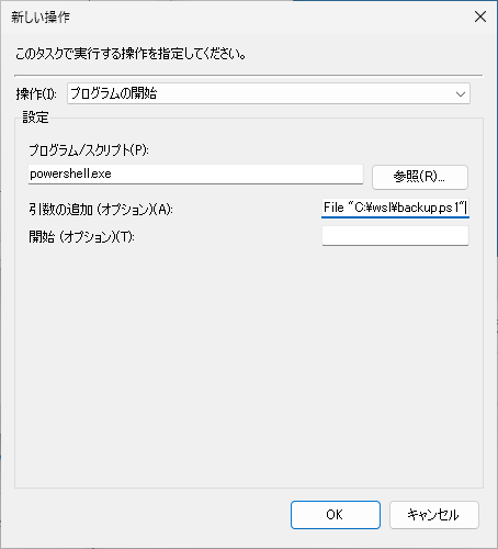 - 引数の追加: -File "C:\wsl\backup.ps1"