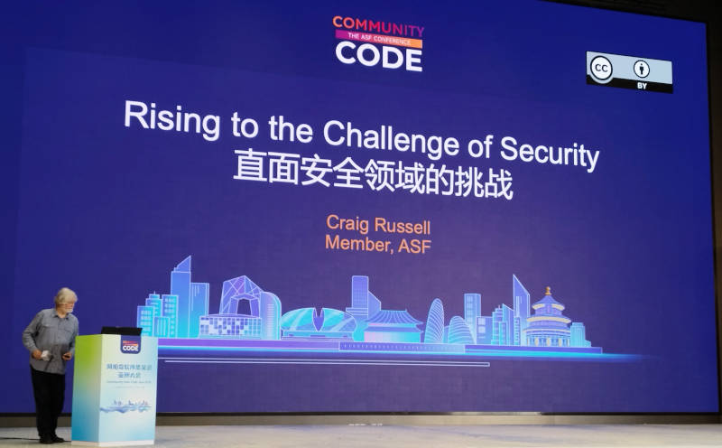 この後はASFのメンバーであるCraig Russell氏が登壇。ここからはオープンソースにおけるセキュリティに関するセッションとなった。