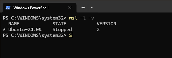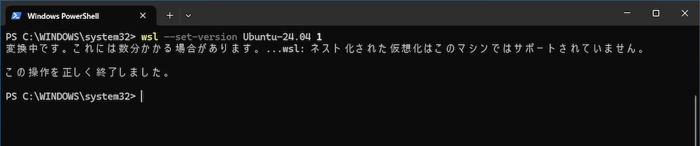 $ wsl --set-version ディストリビューション名 (Ubuntu-24.04) 1