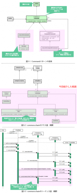 commons chainは処理のチェーンをCompositeパターンで形成し、要求に対する処理の実行をCommandパターンで実現しています(図3-2)。