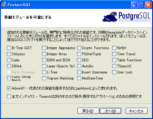 専門的に特殊化されたモジュールであり、初期のtemplateデータベースへインストールしたい時に選択する