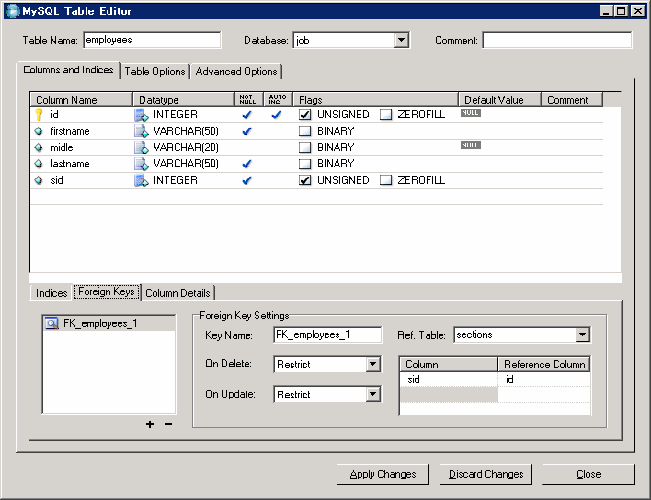 テーブル作成において、最初のカラムのデータ型はデフォルトで「INTEGER、PRIMARYキー」となっており、以降のカラムのデフォルトが「VARCHAR(45)」となっている。今回のテストケースでは一番入力量が少なく、短時間で設定ができた。
