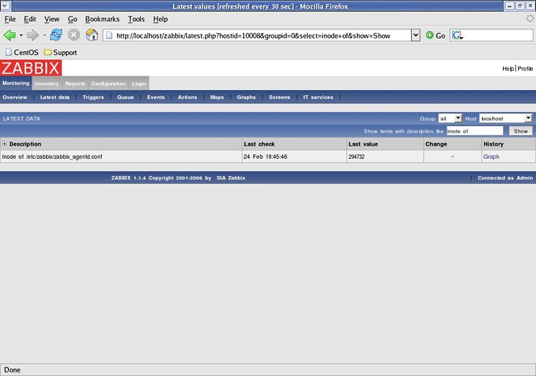 以上で設定は終了です。「Monitoring → Latest Data」をクリックし、右上の「Host」ドロップダウンリストから「localhost_mysql」を選択して、取得した監視値を確認してみましょう。