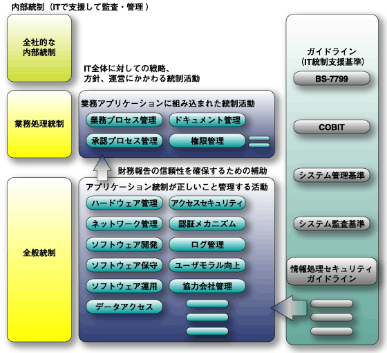 この「ITへの対応」という項目は、米国の内部統制フレームワークとして知られている「COSOフレームワーク」に対応する形で日本版SOX法に追加されたものの1つである。この「ITへの対応」とはITを利用して効率的に監査/管理を行っていくということを示している。