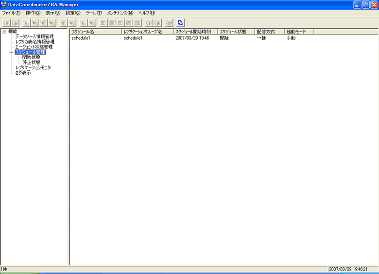 スケジュールの開始は、Manager画面で実施します。Manager画面左側の機能ツリービュー内の「スケジュール管理」をクリックします。