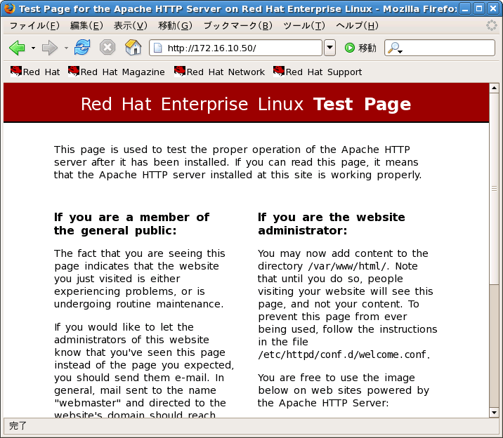 Red Hat Enterprise Linux 5に付属するデフォルトの/etc/httpd/conf/httpd.confファイルでWebサービスが提供可能