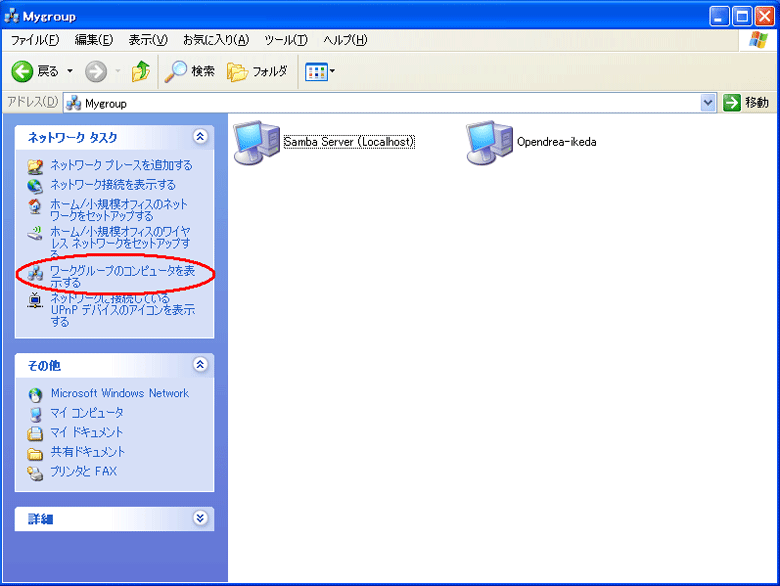 図7:「ワークグループのコンピュータを表示する」をクリックする