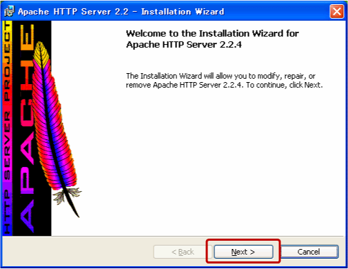 今回はインストーラからApacheをアンインストールしてみましょう。Apacheインストーラをダブルクリックしてください。インストーラをダブルクリックをするとインストールウィザードが起動します。