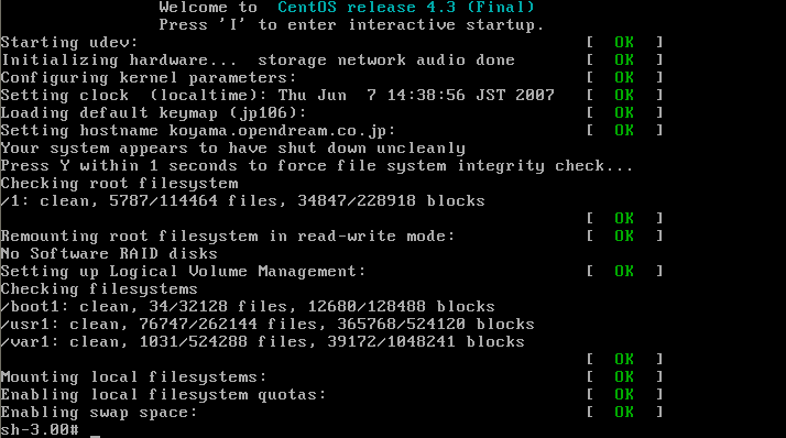 図3:シングルユーザモードの画面 (画像をクリックすると別ウィンドウに拡大図を表示します)