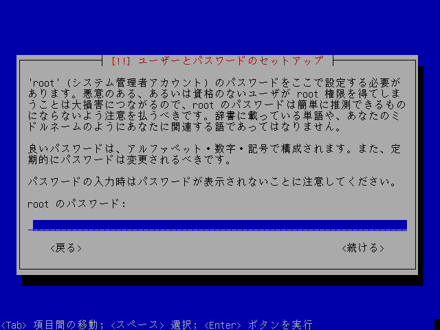 フォーマットが終わると、rootのパスワード設定画面になります。指定したいパスワードを入力してEnterキーを押してください。