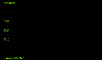 JIS X 0213:2004で追加された文字列とそうでない文字列を表に挿入するために下記SQLを実行する。