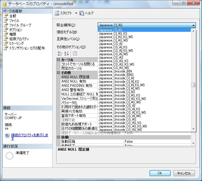 図1:照合順序の変更 (画像をクリックすると別ウィンドウに拡大図を表示します)