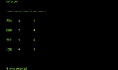 select ncharcol, len(ncharcol), datalength(ncharcol) from unicode_test;