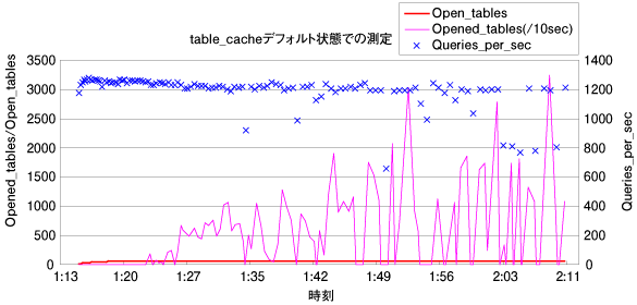 図1:table_cacheデフォルト状態での測定 (画像をクリックすると別ウィンドウに拡大図を表示します)