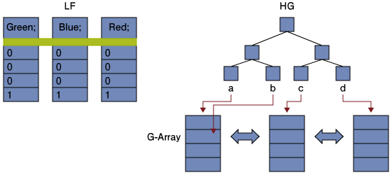 Low Fastは一般的な「ビットマップインデックス」と考えてよいでしょう。B-treeのリーフ部分にデータ件数分のビットマップがぶら下がる構造になっています。