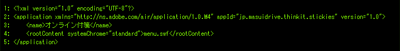 AIRアプリケーションを作るには、アプリケーション記述ファイルが必要です。「Sticka-app.xml」として、下記のファイルを作成します。文字コードはUTF-8で作成してください。