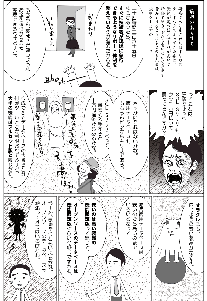 > マンガ版 たかはしもとのぶの「はじめてのオープンソース」 第10回:オープンソースにもデータベースってあるんですか?(中-後編)