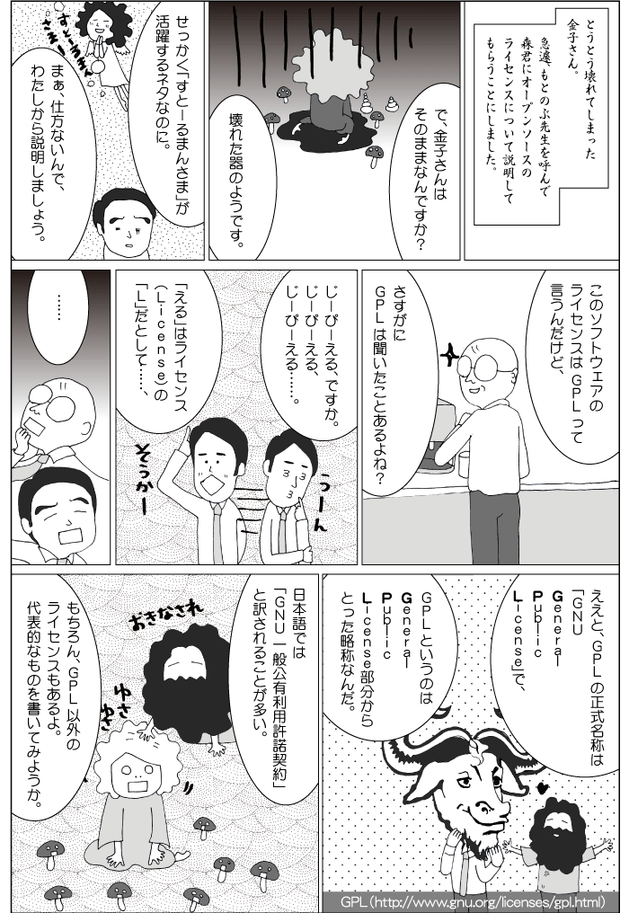 > マンガ版 たかはしもとのぶの「はじめてのオープンソース」 第17回:オープンソースのライセンスに沿って運用してますか?(中-前編)