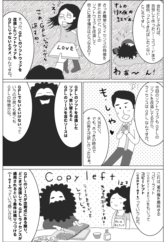 > マンガ版 たかはしもとのぶの「はじめてのオープンソース」 第19回:オープンソースのライセンスに沿って運用してますか?(後編)