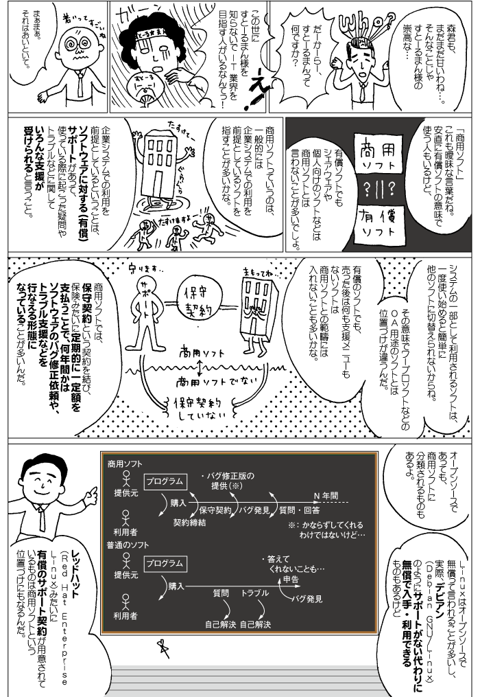 > マンガ版 たかはしもとのぶの「はじめてのオープンソース」 第2回:オープンソースって無料で使えるの?(後編)