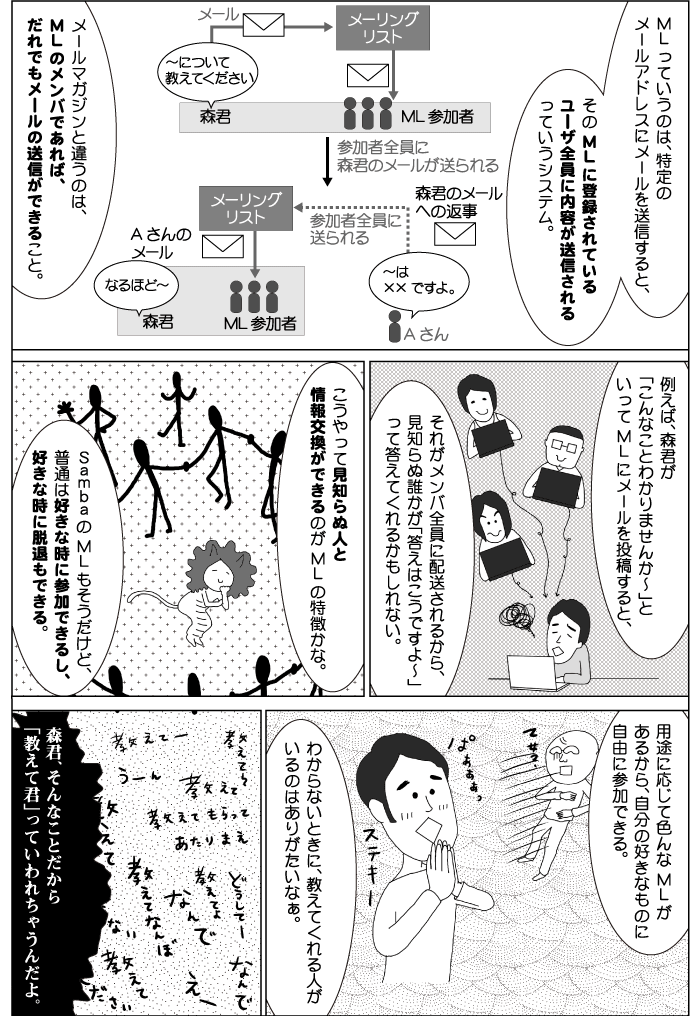 > マンガ版 たかはしもとのぶの「はじめてのオープンソース」 第21回:メーリングリストでコミュニティに参加しよう(中-前編)