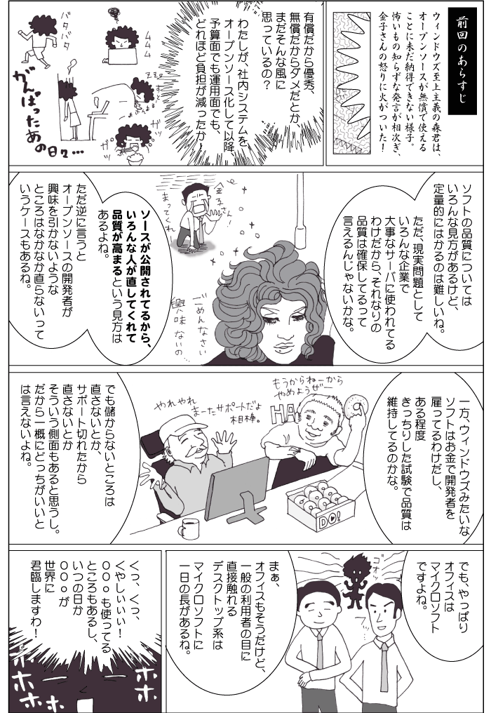 > マンガ版 たかはしもとのぶの「はじめてのオープンソース」 第7回:オープンソースって、仕事に使えるのかなぁ?(後編)