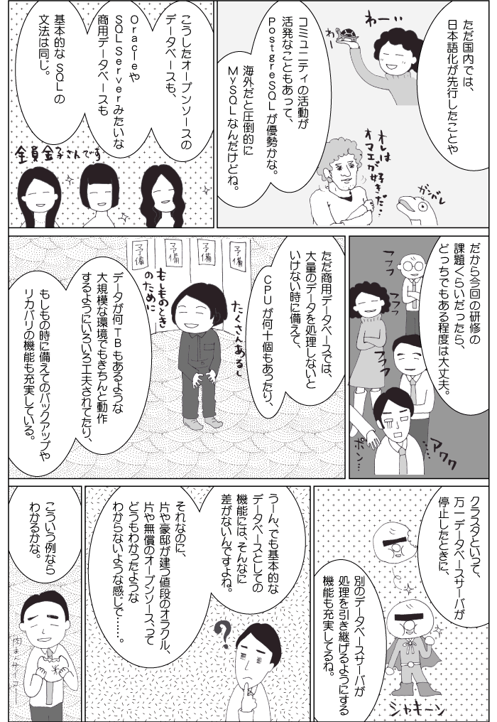 TOPサーバ構築・運用> マンガ版 たかはしもとのぶの「はじめてのオープンソース」 第9回:オープンソースにもデータベースってあるんですか?(中-前編)