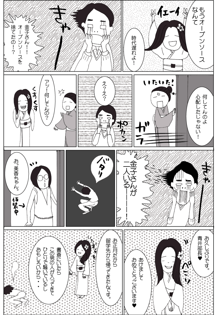 > マンガ版 たかはしもとのぶの「はじめてのオープンソース」 年末年始特別編:金子家で新年会