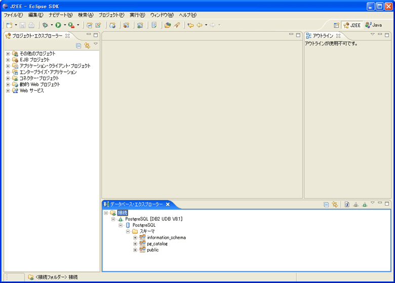 「Database Explorer」ビューが図3のように表示されます。これでEclipse WTPとDBの接続設定が完了となります。
