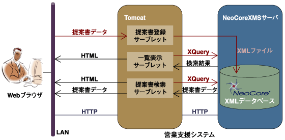 | 提案書のデータをXMLデータベースに格納する機能 |