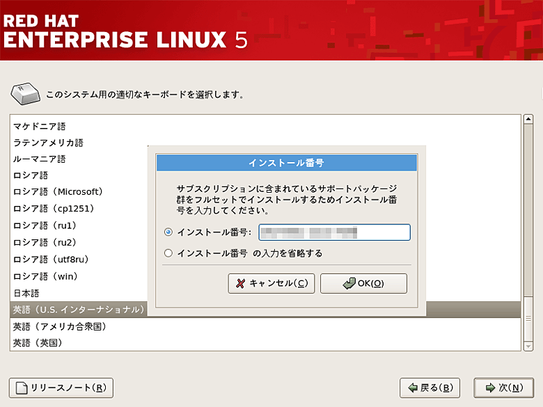 Red Hat Enterprise Linuxのインストールを行っていると、キーボード配列の設定後に「インストール番号(Installation Number)」というものを聞かれます。Red Hat Enterprise Linux 5より先にCentOS 5を触った方はインストール番号という言葉に戸惑うかもしれません(図1)