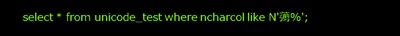 曖昧検索を実行する。これは結果として「??」を格納した1行だけ戻るのが正しい。では下記のSQLを実行してみる。