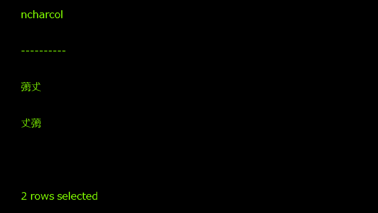 では次のように、もう1行サロゲートペアで扱う文字で構成された行を追加し、さきほどと同じSQLを実行してみる。