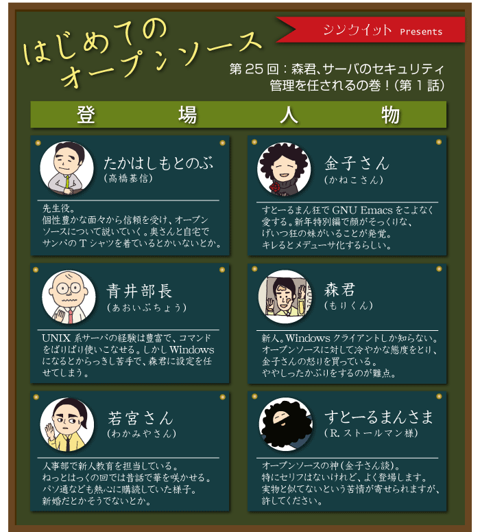 > マンガ版 たかはしもとのぶの「はじめてのオープンソース」 第25回:森君、サーバのセキュリティ管理を任されるの巻!(第1話)