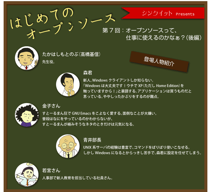 > マンガ版 たかはしもとのぶの「はじめてのオープンソース」 第7回:オープンソースって、仕事に使えるのかなぁ?(後編)