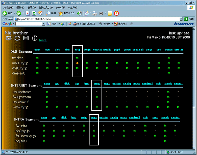 図2:MRTGのグラフが付記された通信量監視の詳細画面