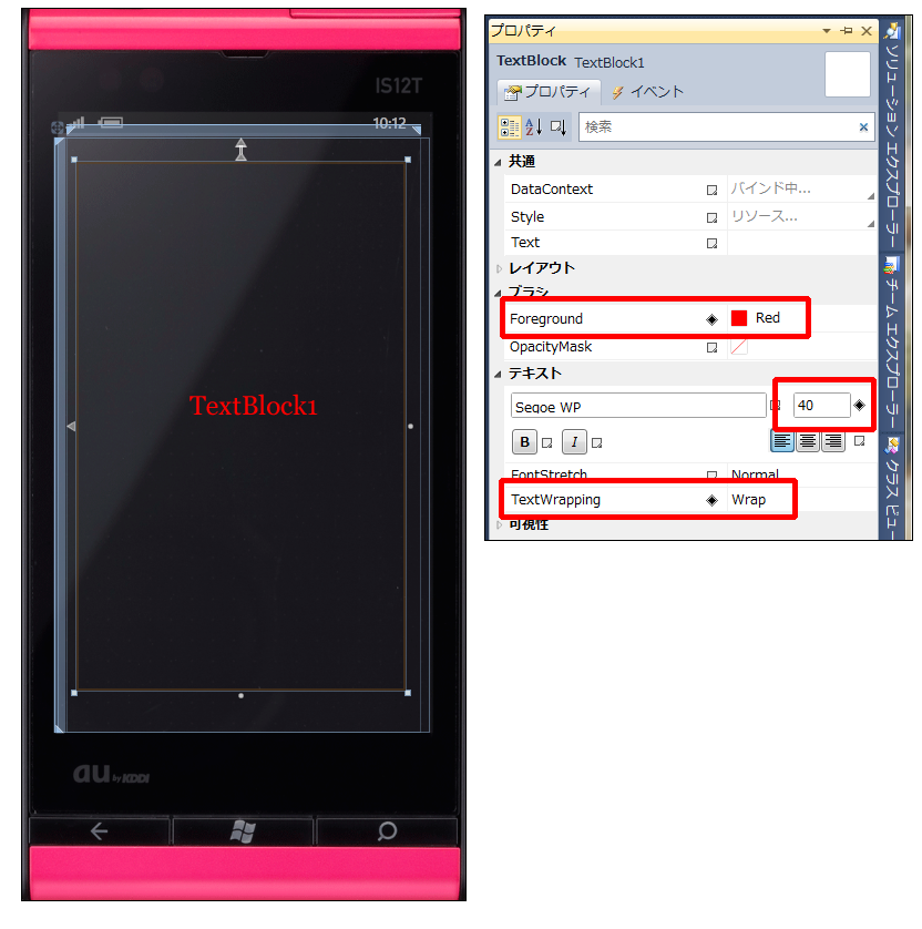 図3:TextBlockコントロールを配置し、プロパティを設定した(クリックで拡大) |