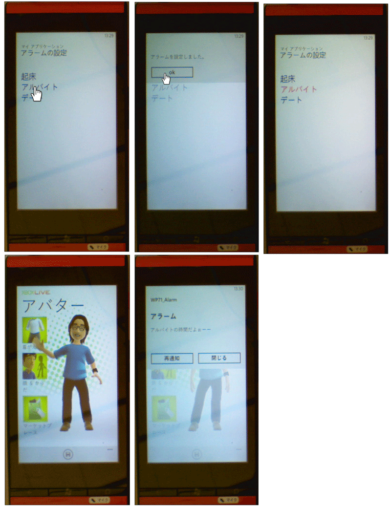 このサンプルでは、リストボックスに表示されたスケジュールを選択し、アラームにセットします。